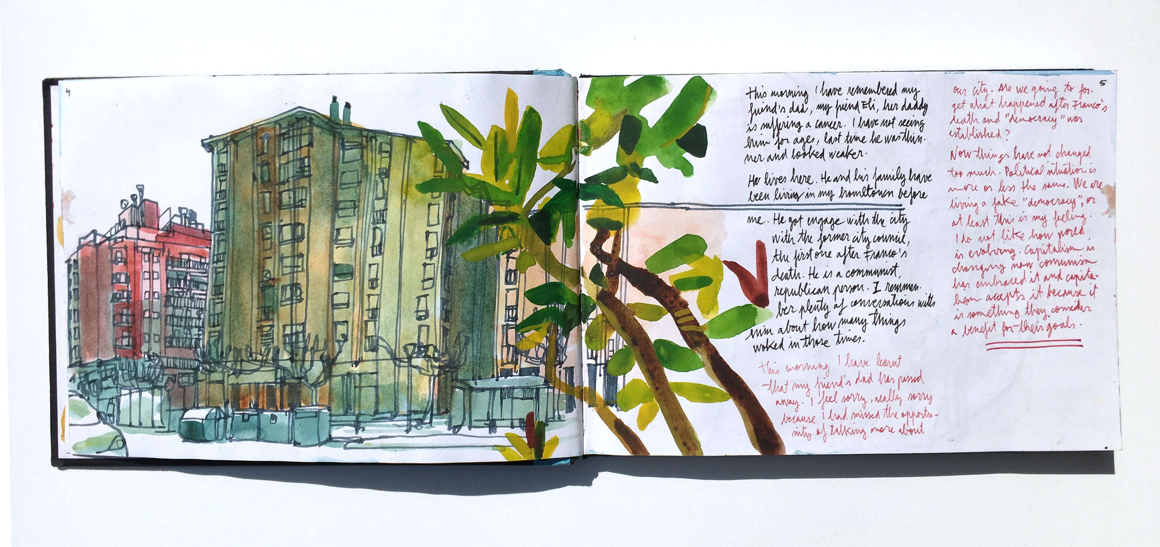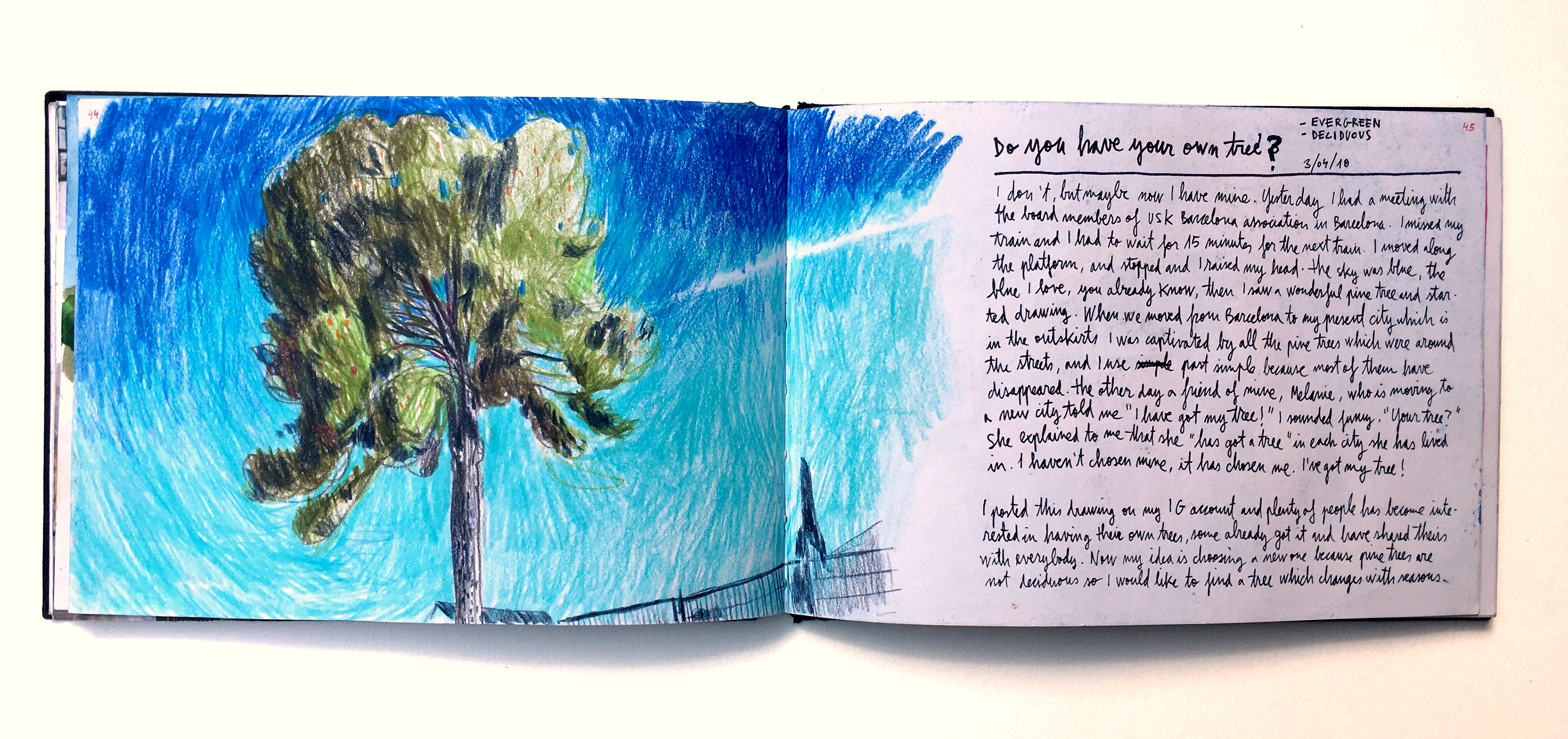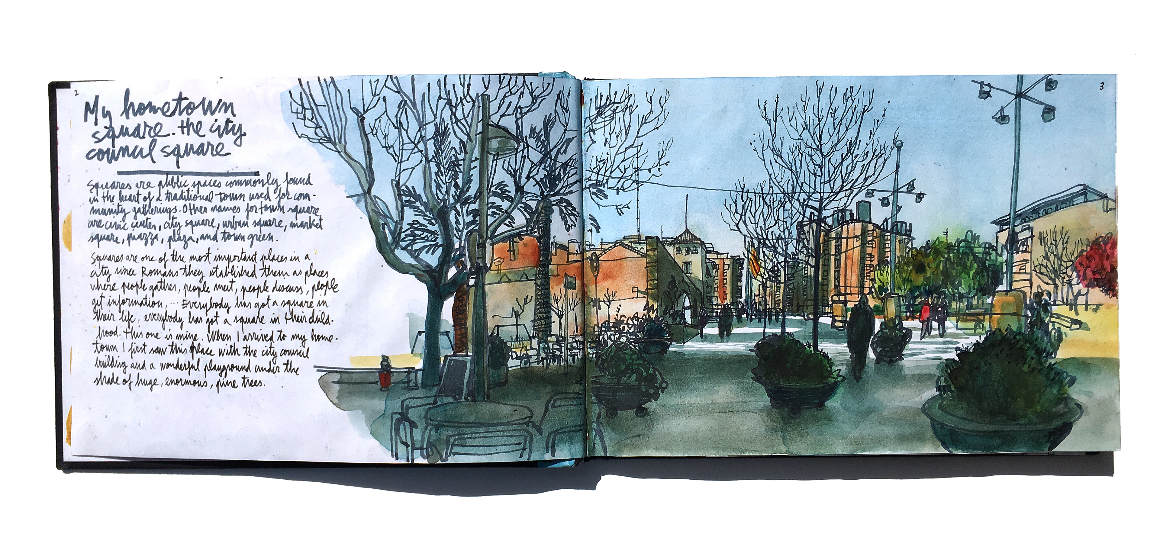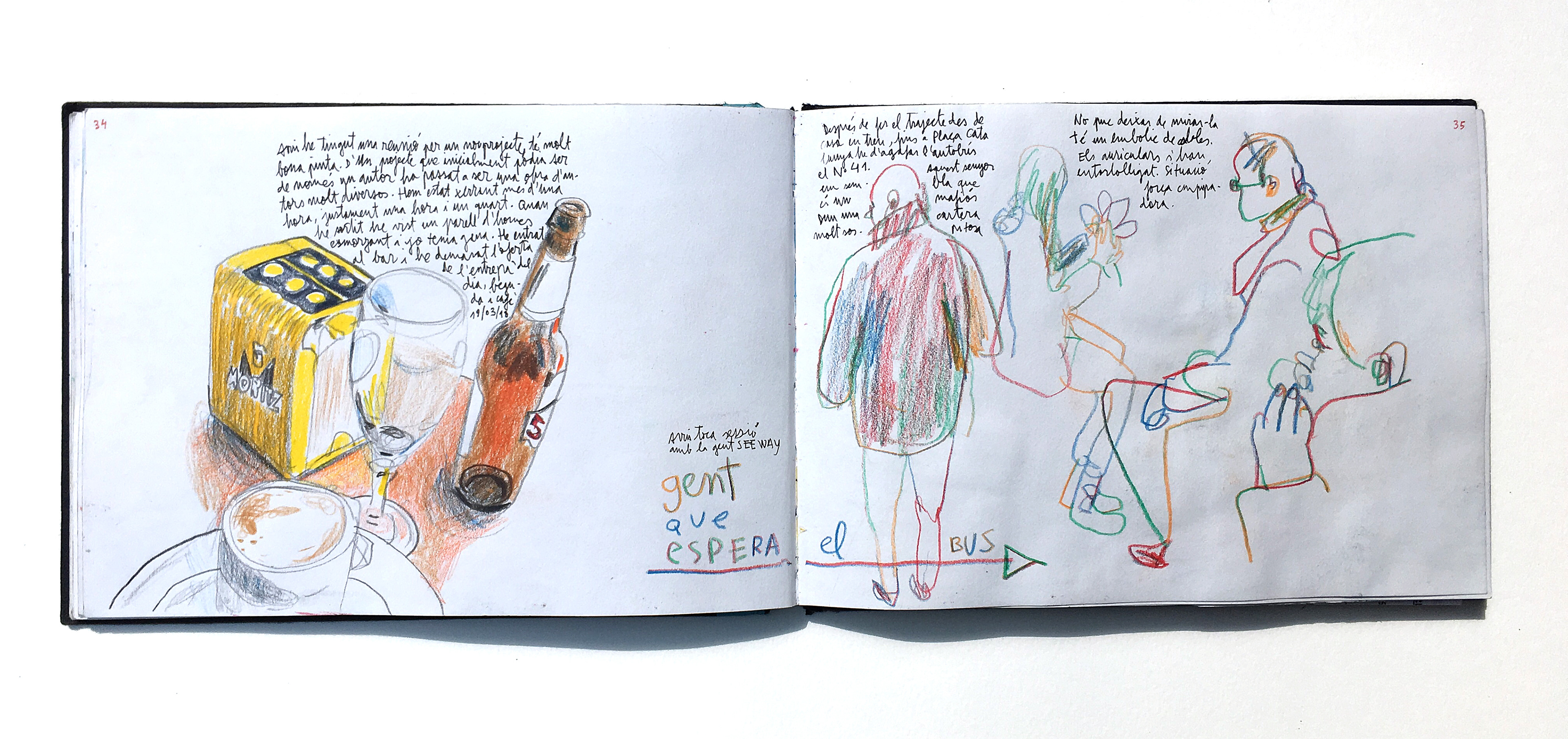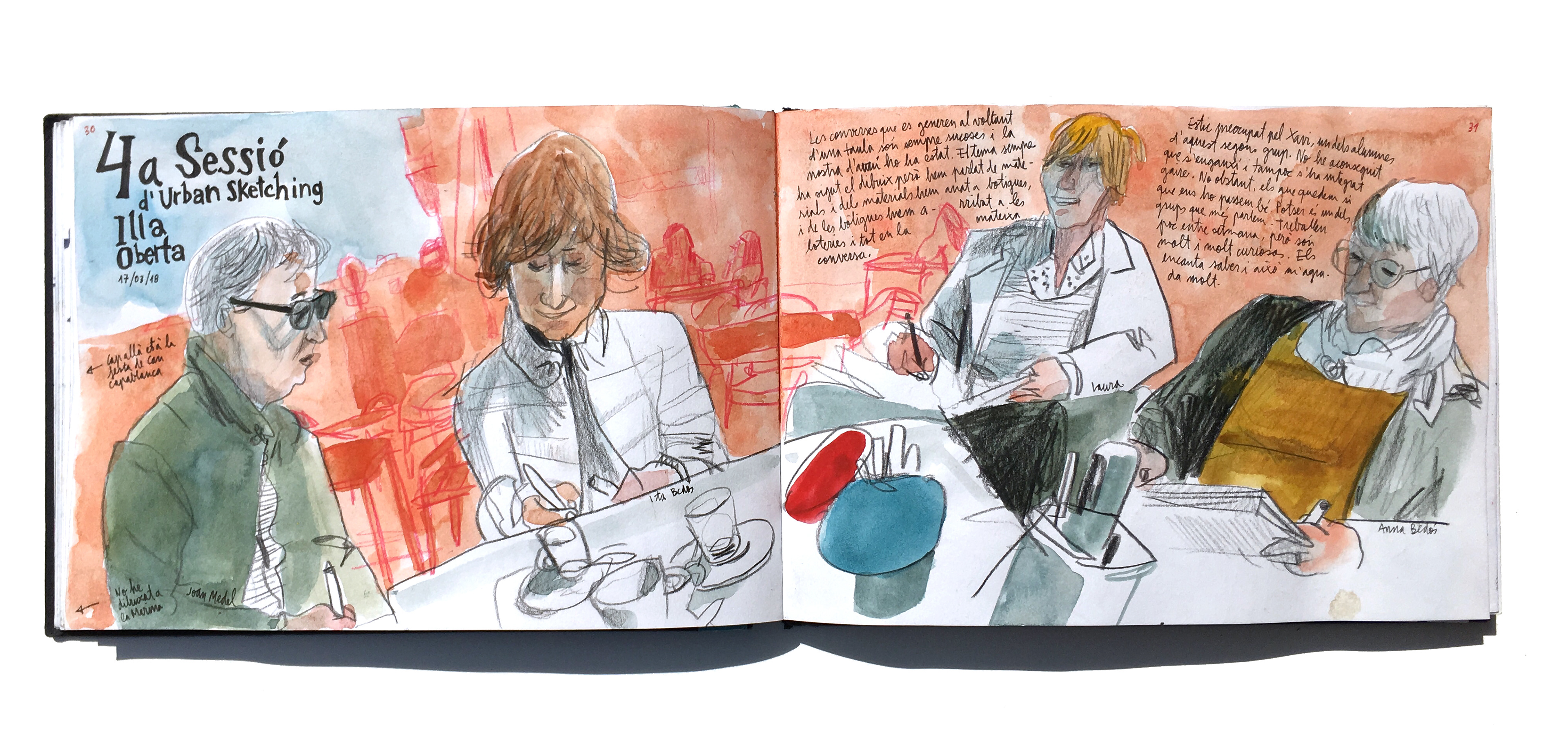 Here there are some of the double spreads from my Sketchbook #42. There are plenty of drawings done with coloured pencils but there still some of them done with watercolour.